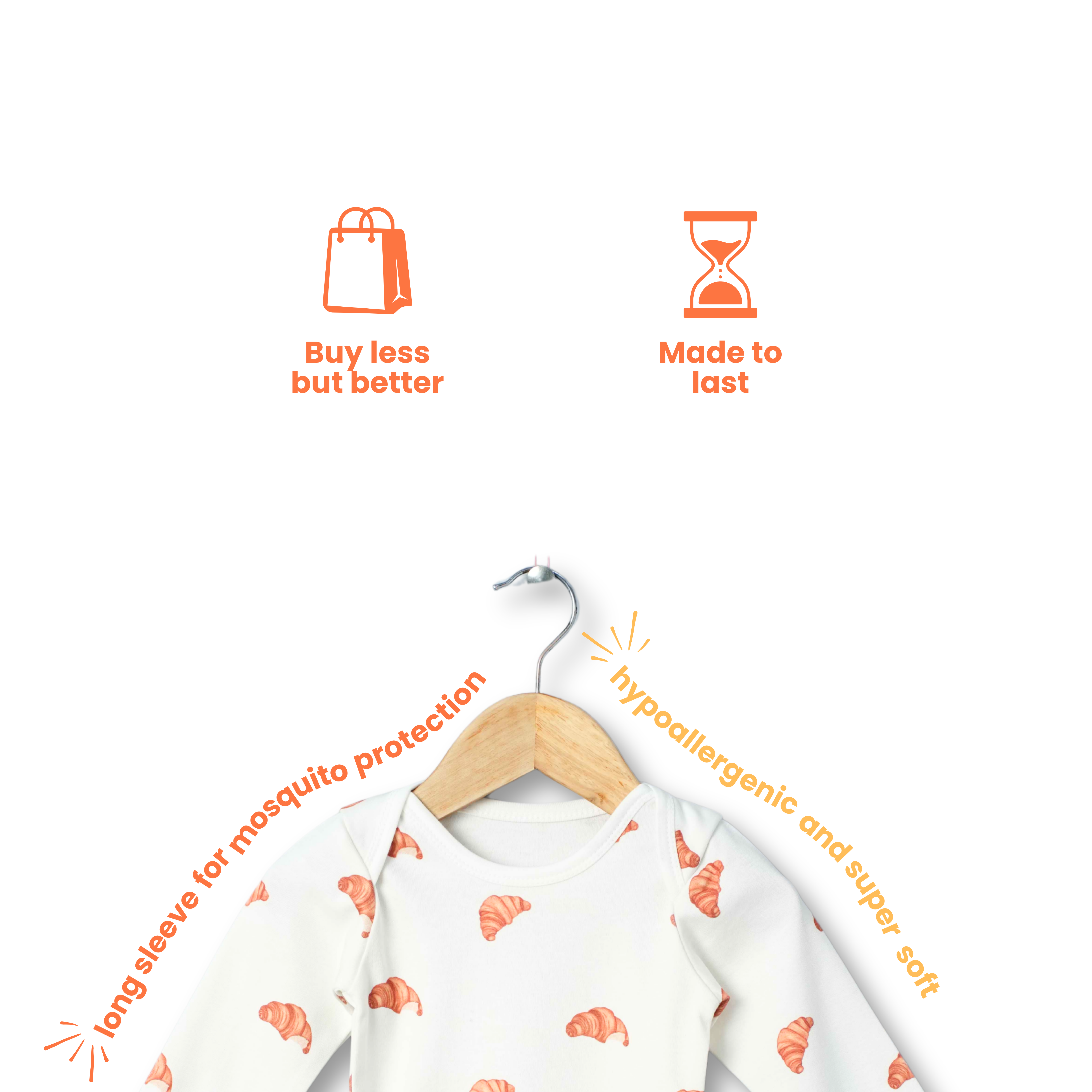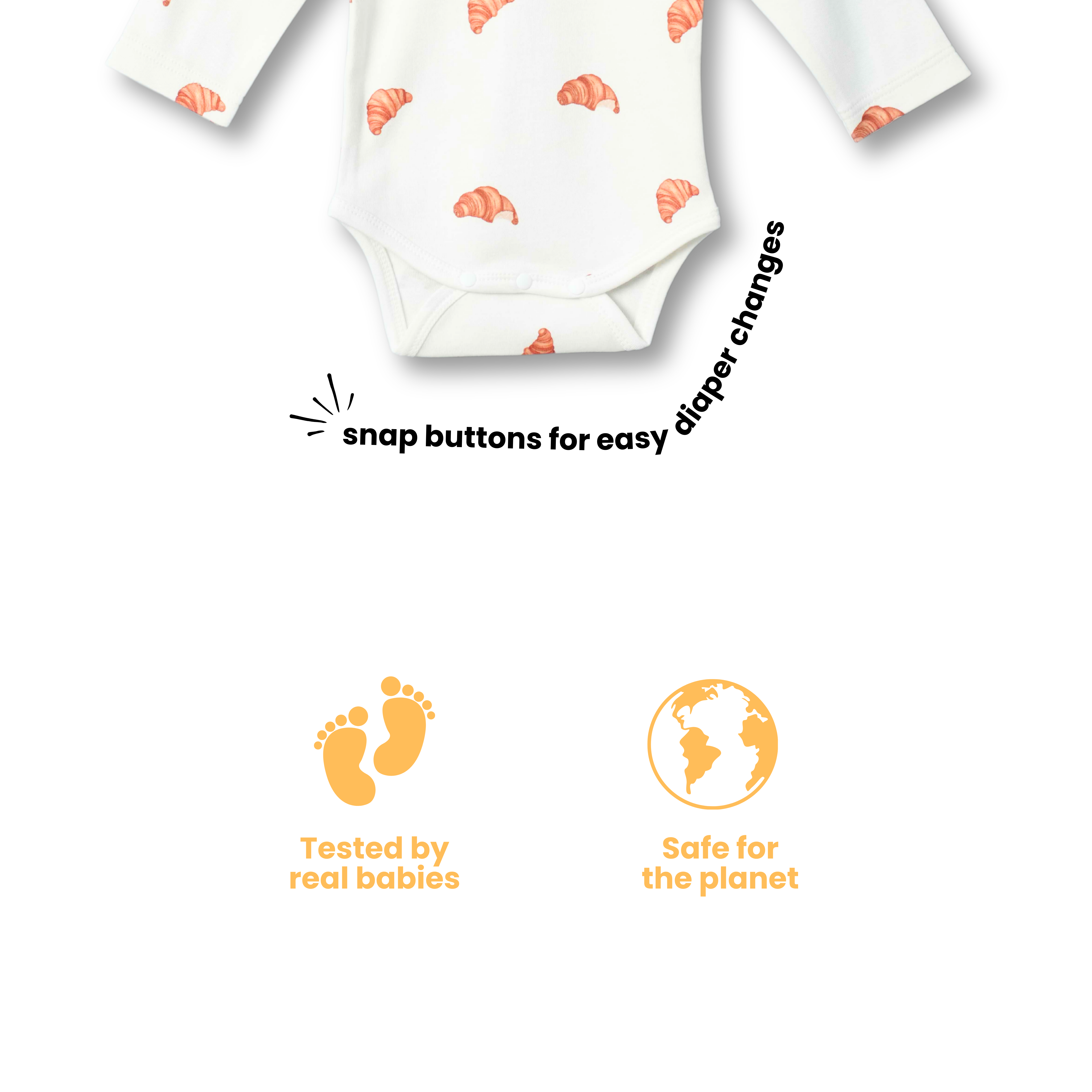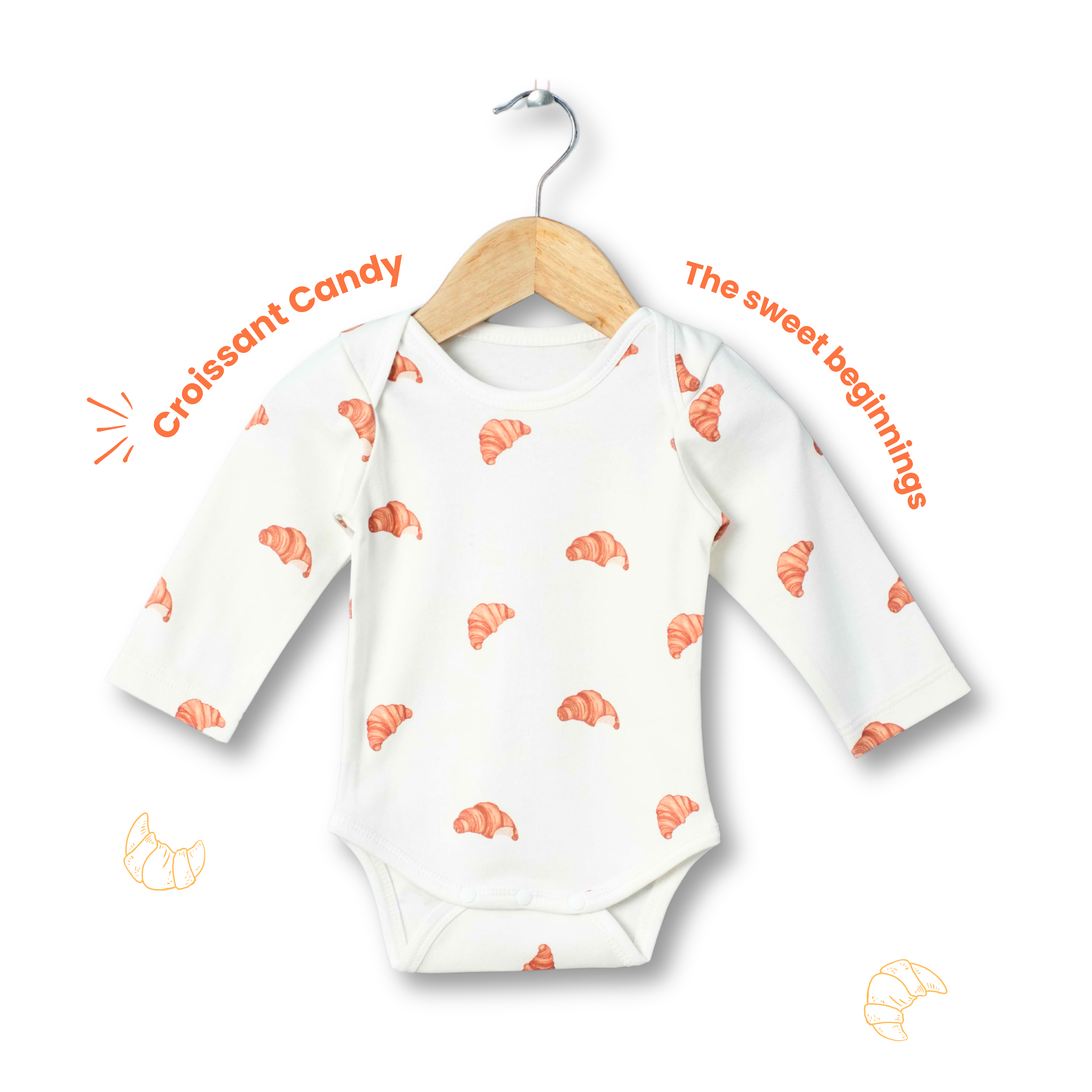 Organic Cotton Long Sleeve Bodysuit - Croissant Candy