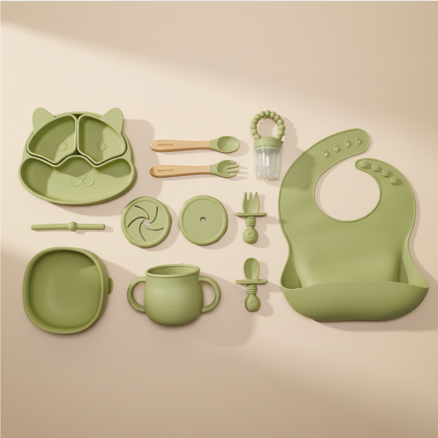 - Silicone Cutlery: Designed ergonomically for little hands.