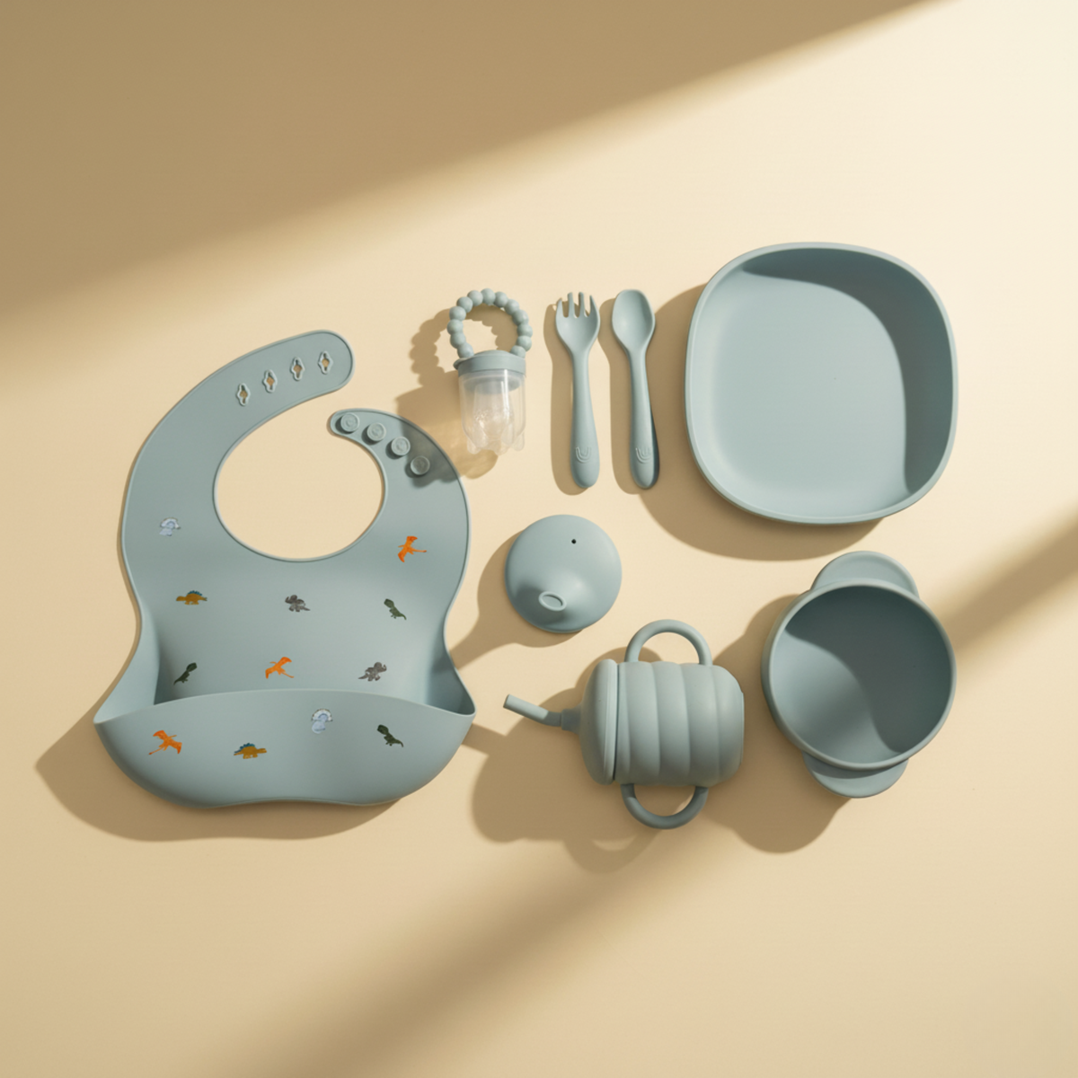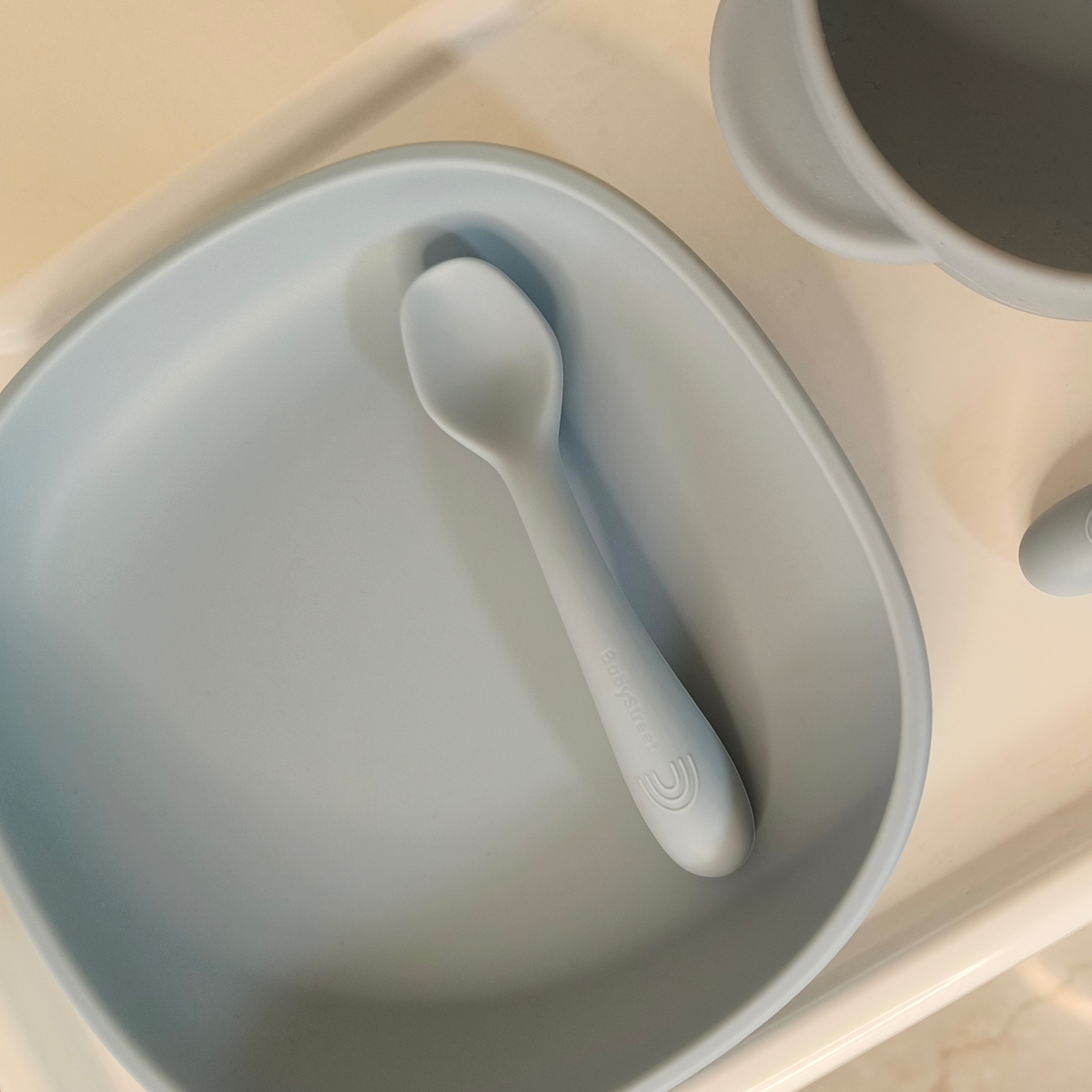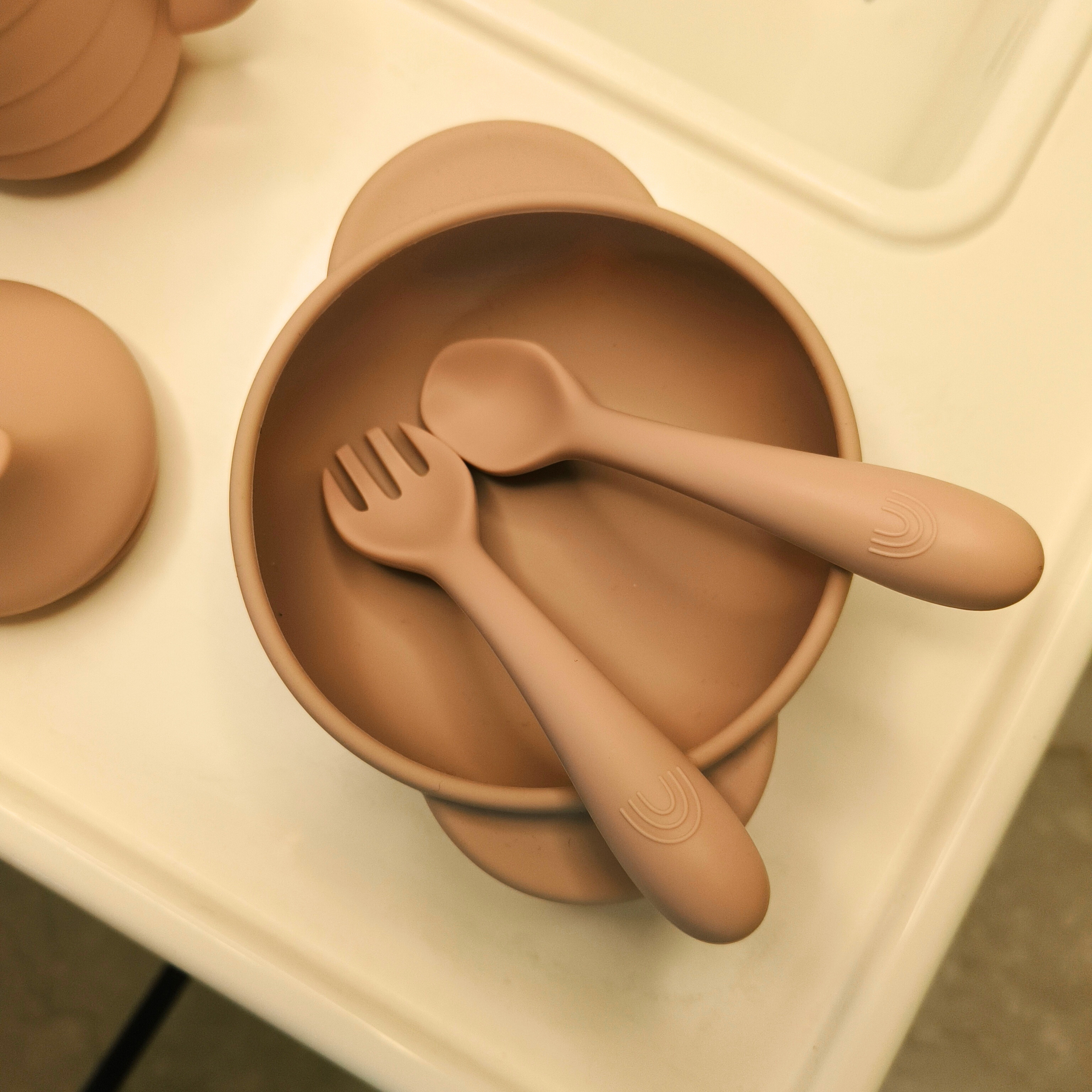 - Cutlery: Gentle, flexible, ergonomic spoon & fork with soft tips to protect little teeth.