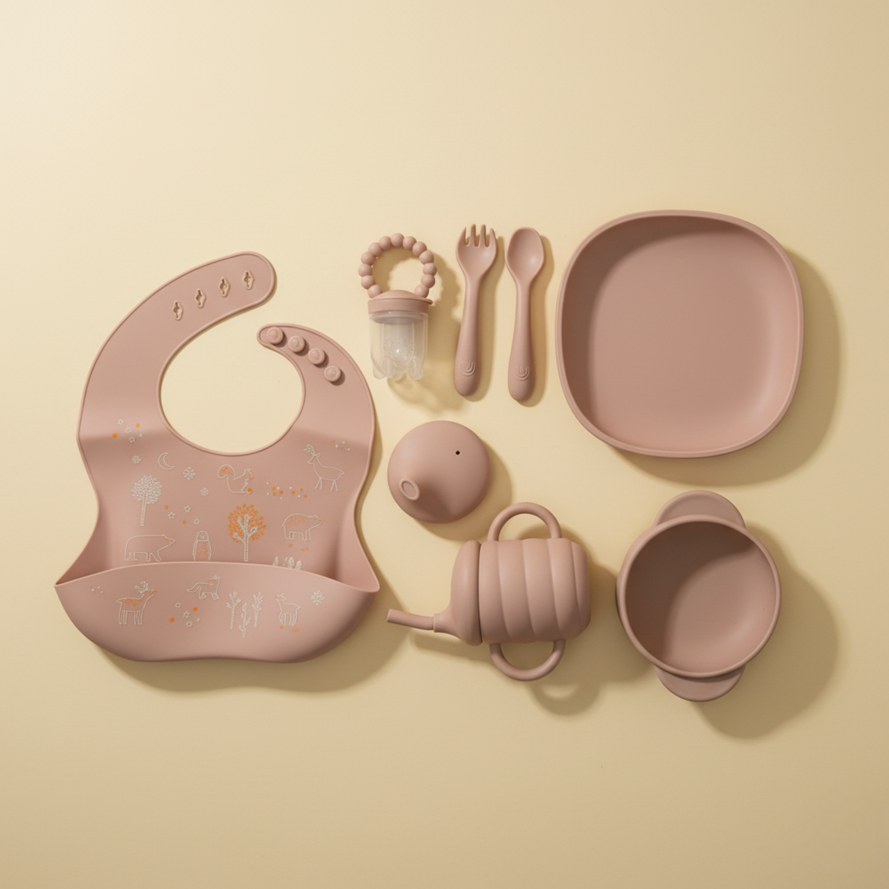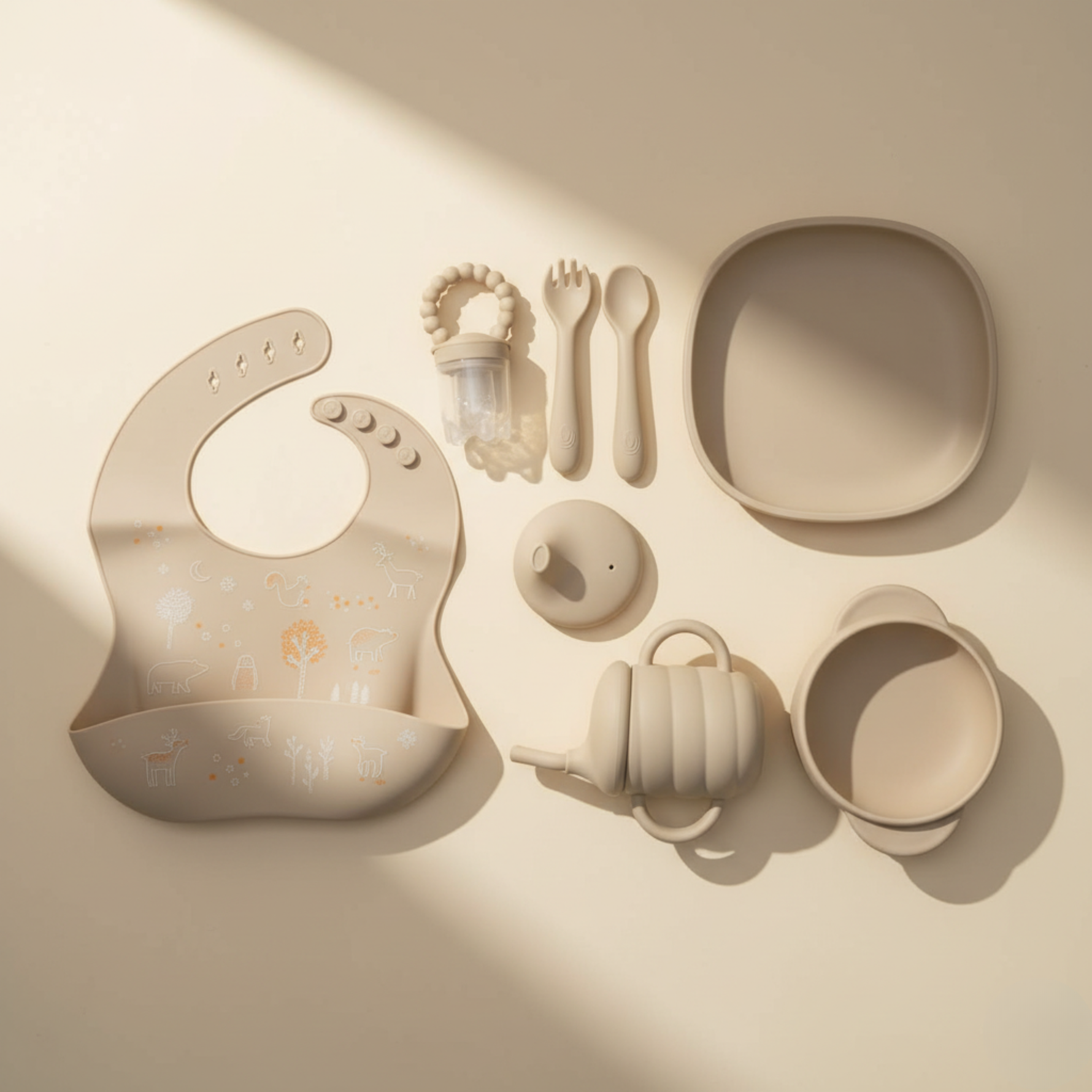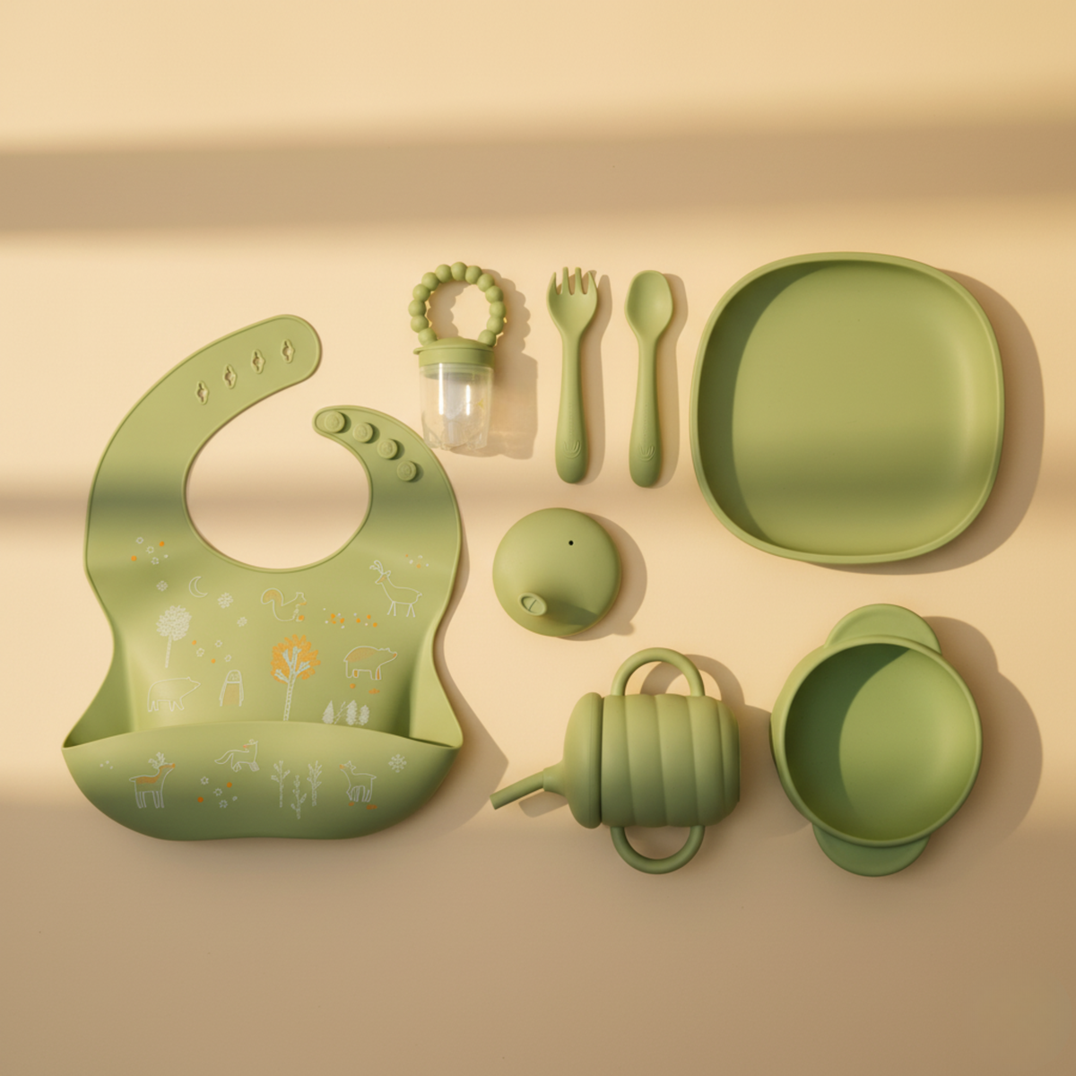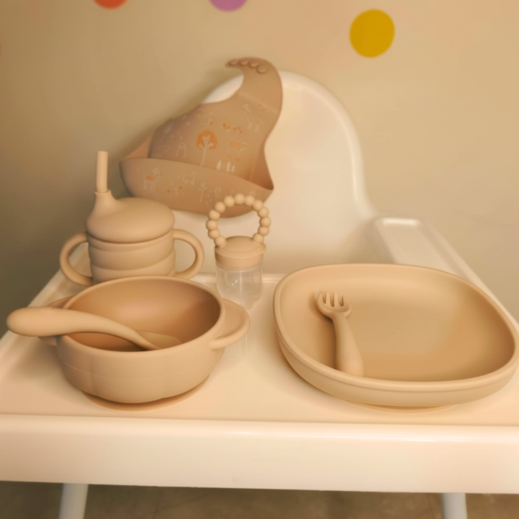 - Cutlery: Gentle, flexible, ergonomic spoon & fork with soft tips to protect little teeth.