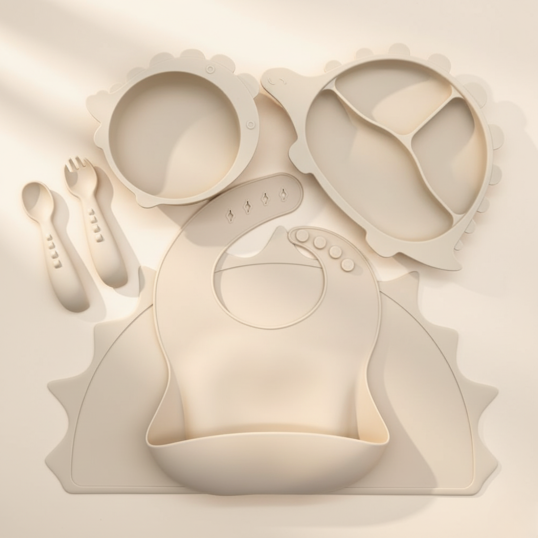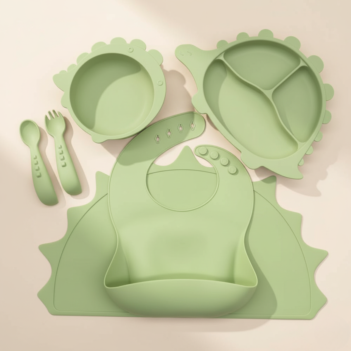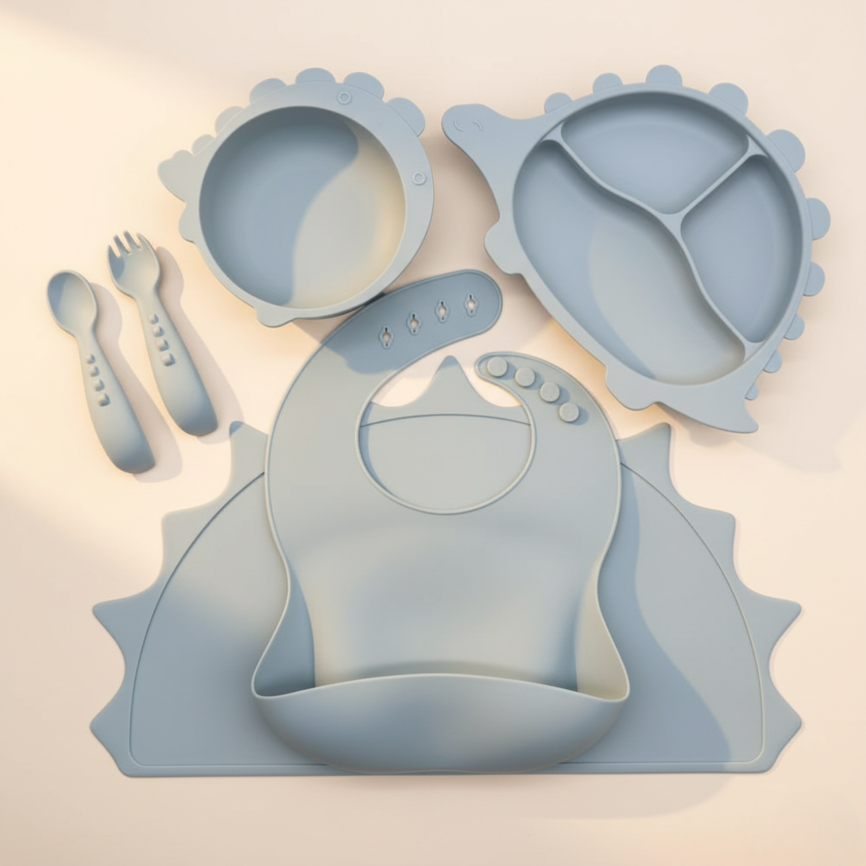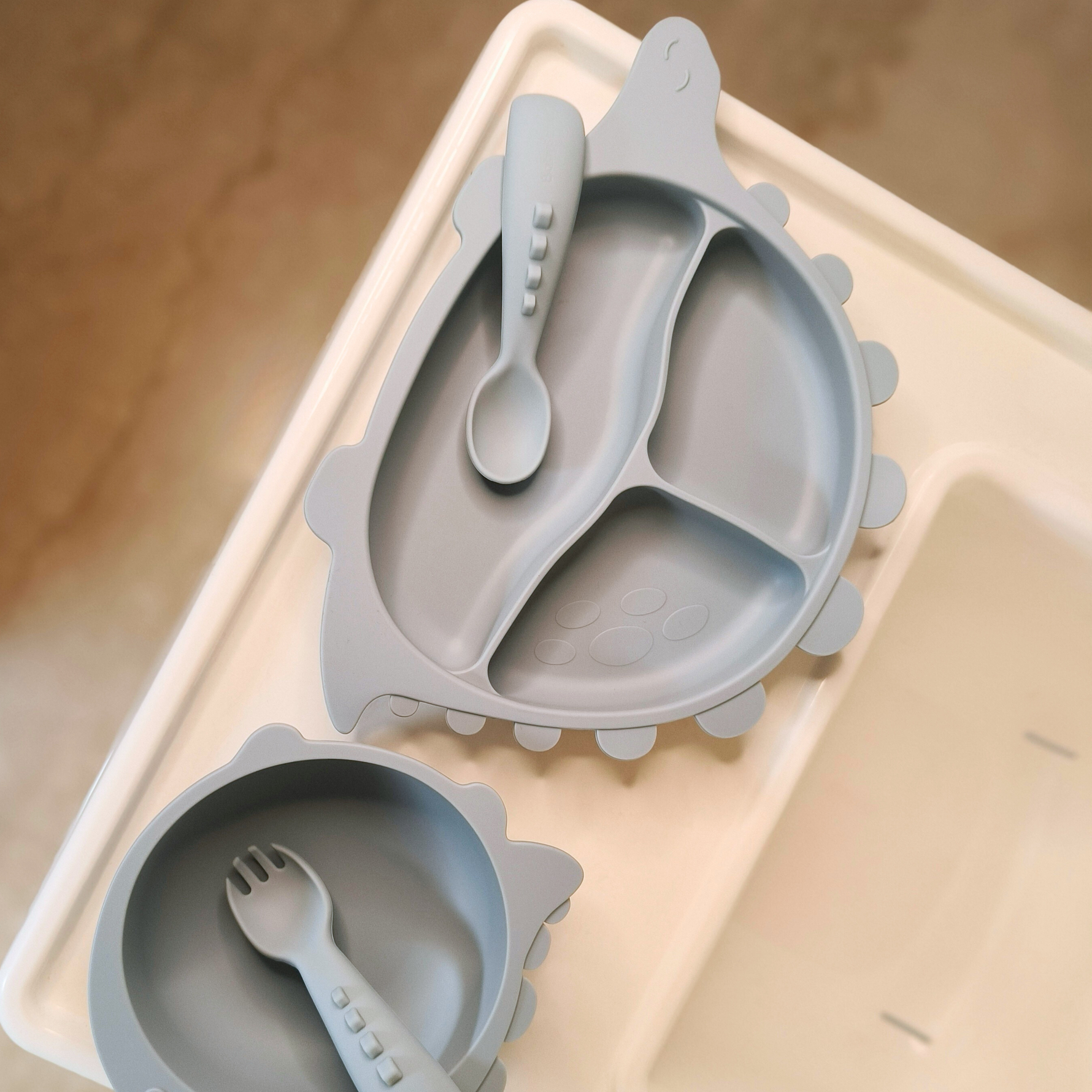 • Dino Plate: Sectioned plate for balanced meals, with a strong suction base for mess-free mealtime.