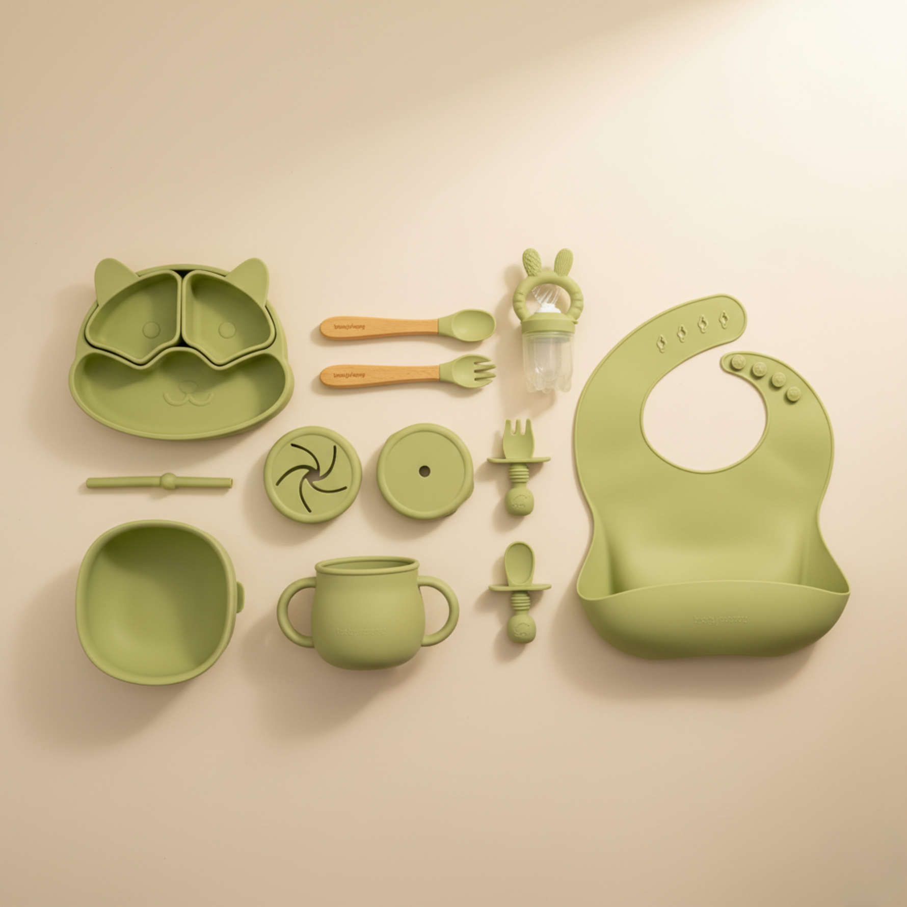 • Silicone Cutlery: Designed for little hands.