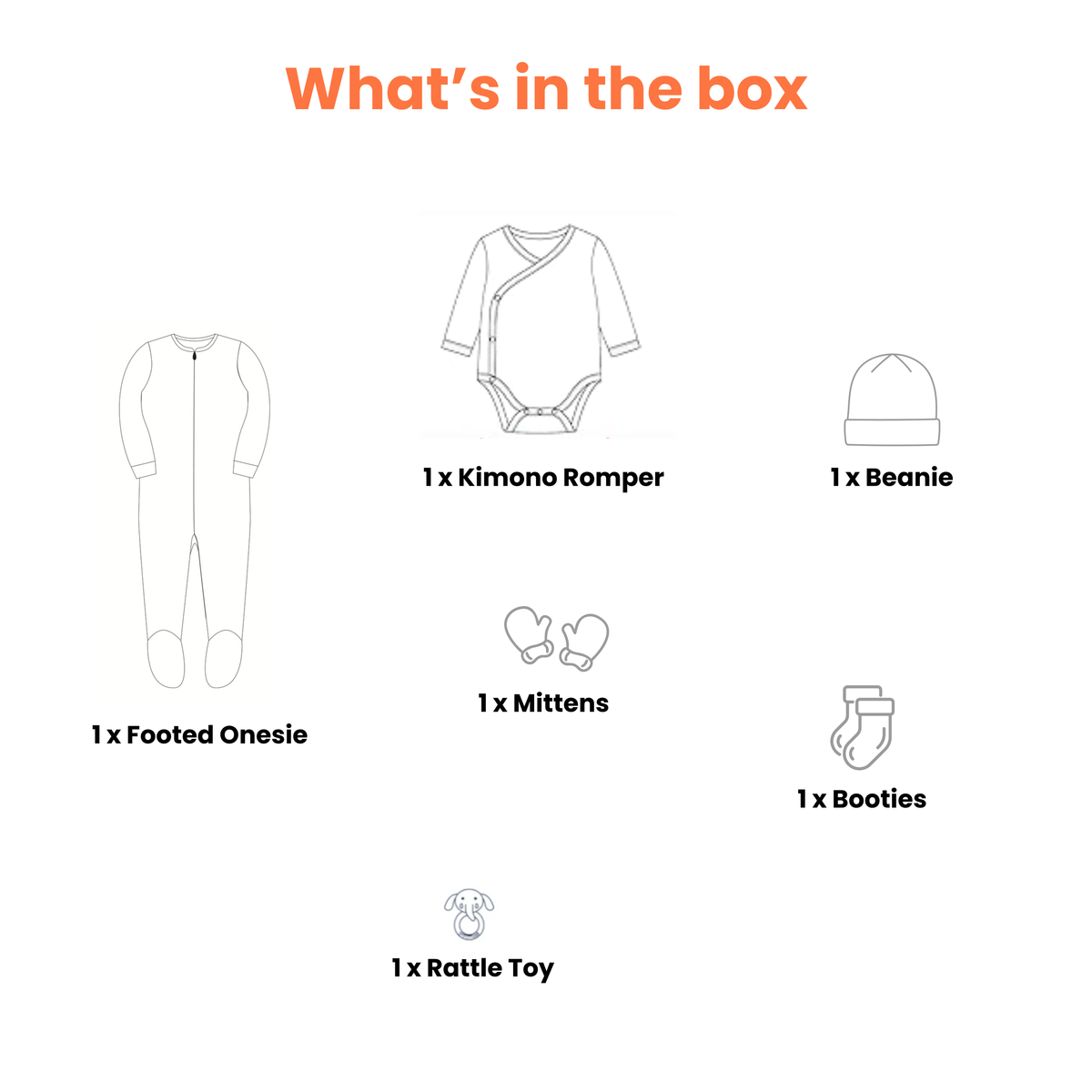 A thoughtful gift for little ones, with two cozy outfits and cute accessories made from gentle organic cotton. Perfect for keeping babies comfy and adorable, it’s a sweet way to share love and warmth.