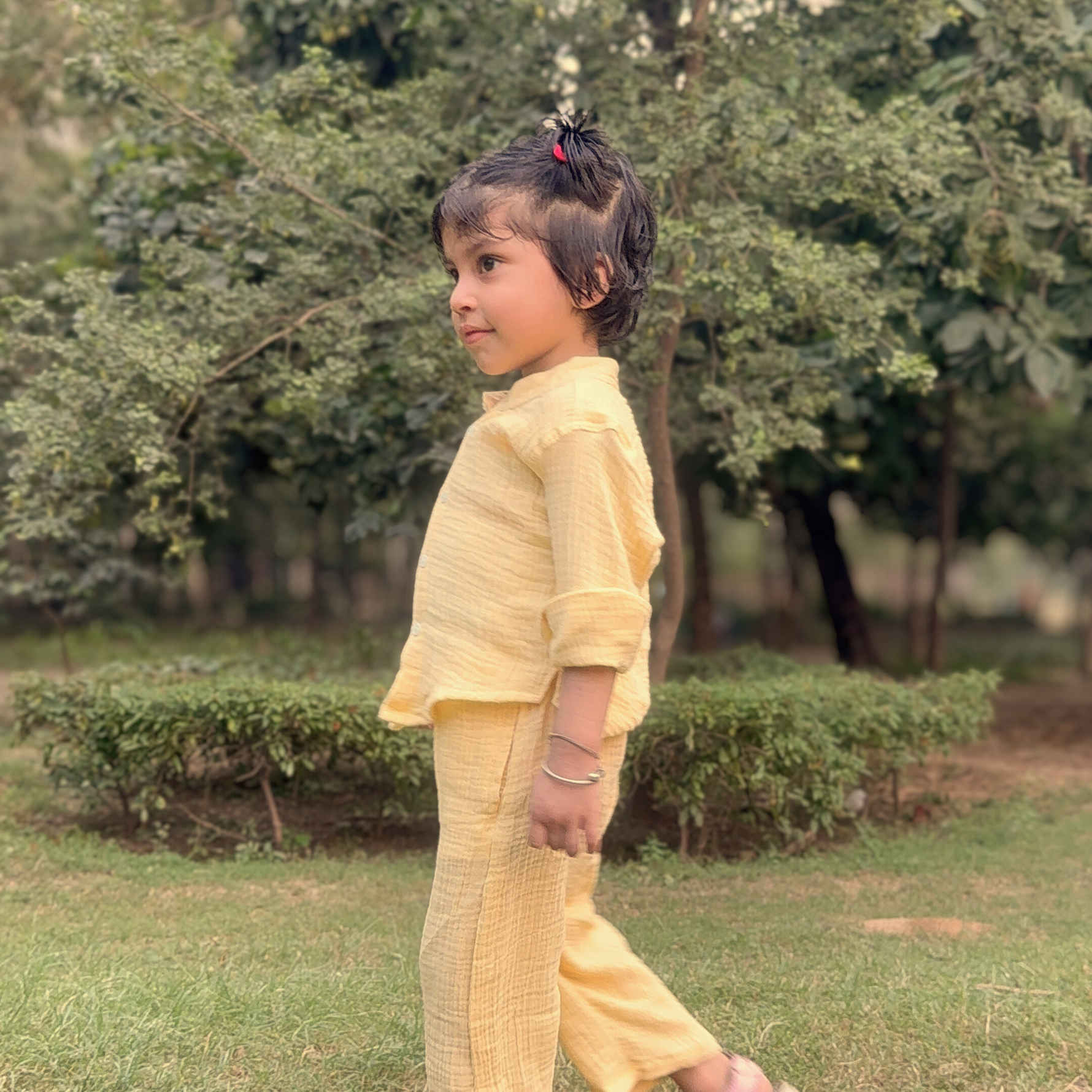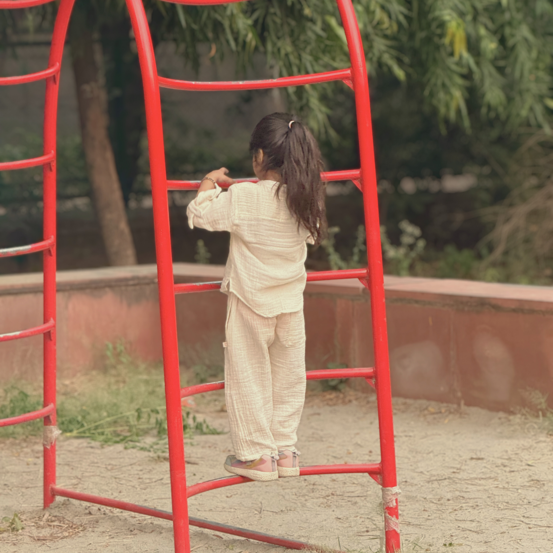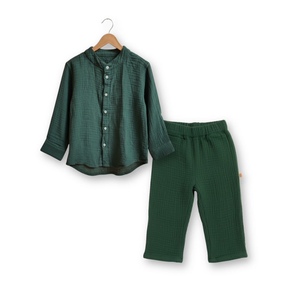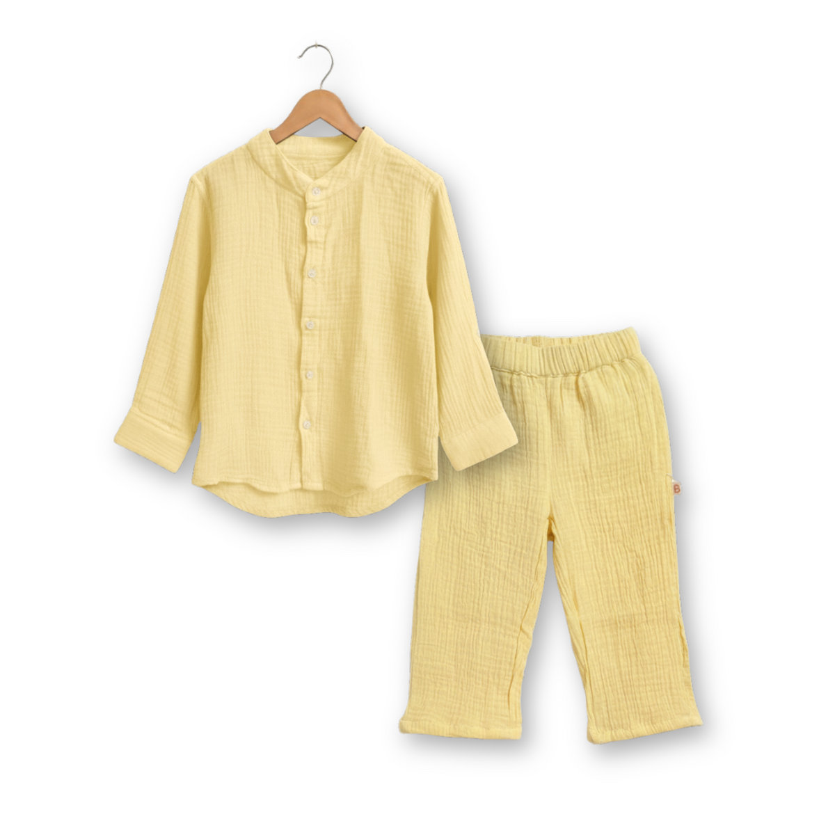 Smart classic unisex co-ord set comes with a shirt and pant combo, tailored slow like in a Atelier. Designed for year-round wear, it moves effortlessly through every season and setting—beachy summers, cozy winters, playful autumn days, relaxed lounge moments, or chic resort escapes.