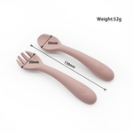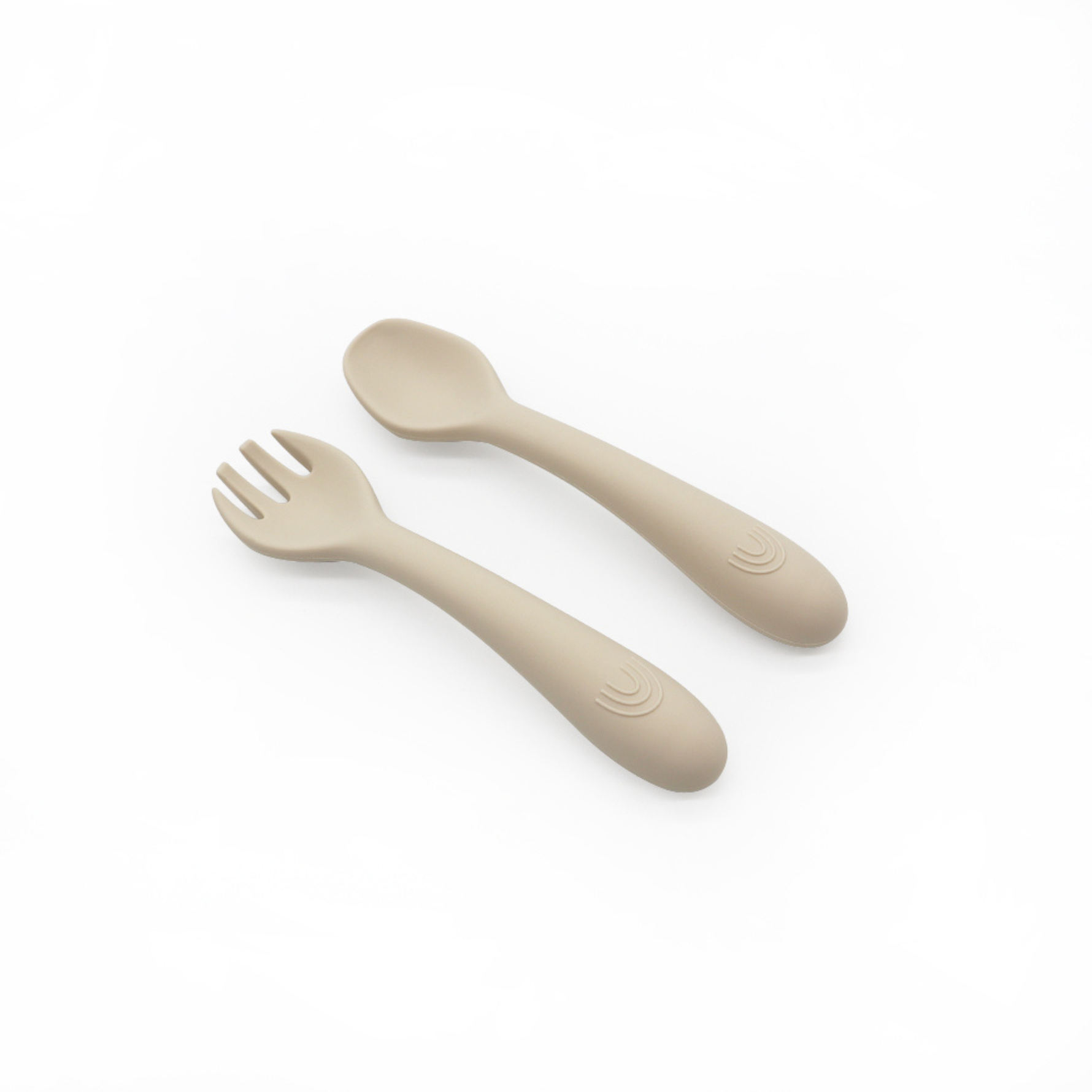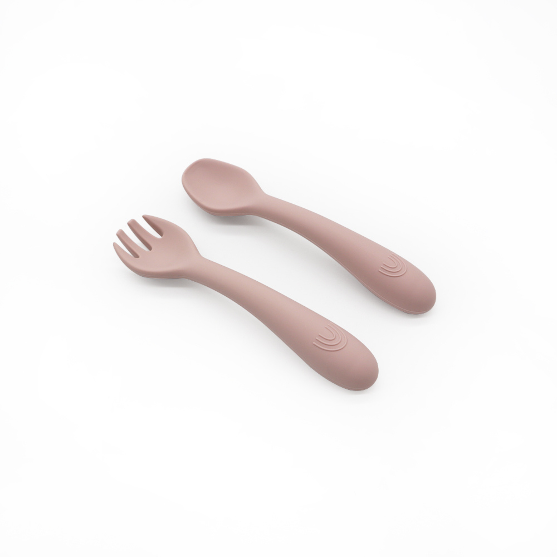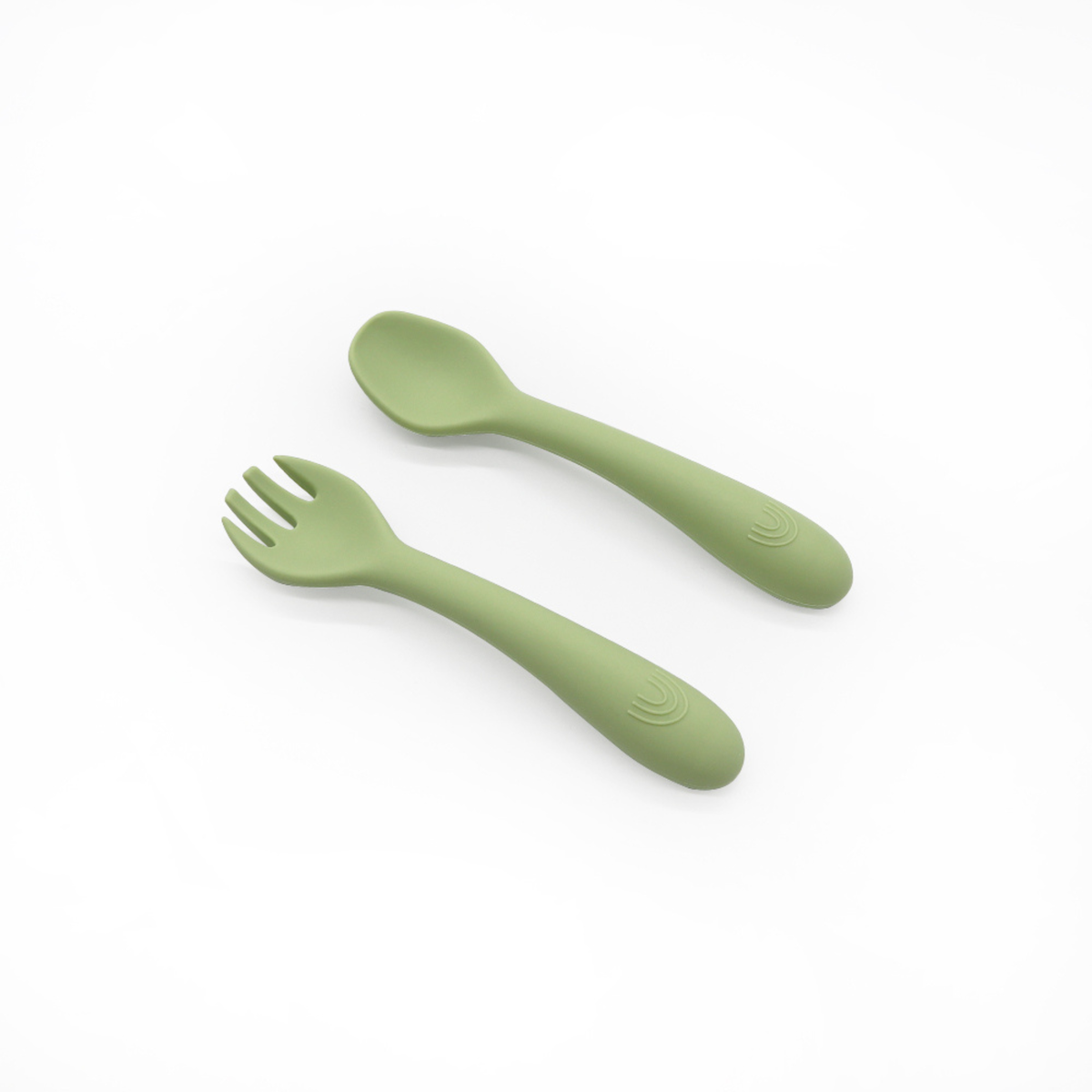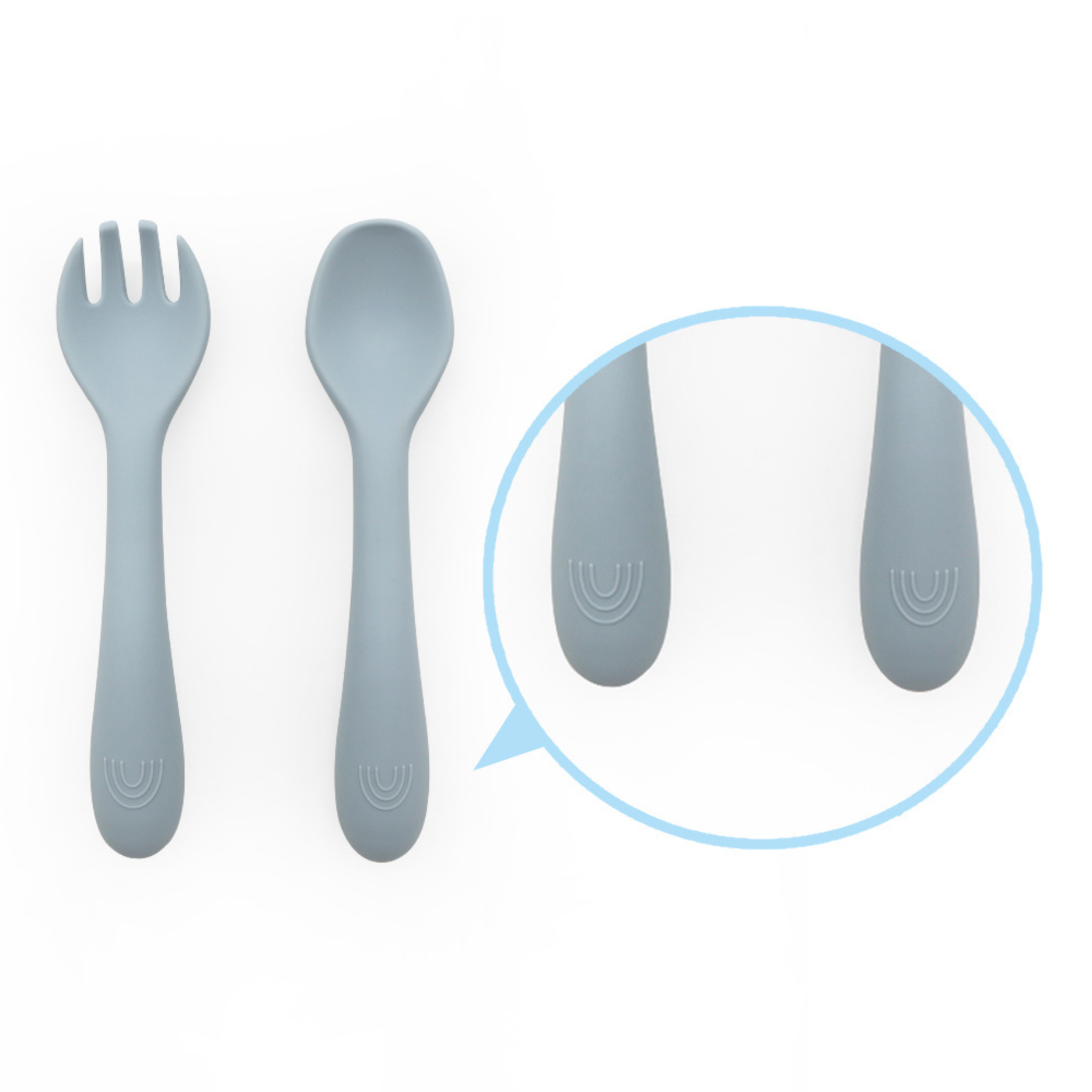Gentle, flexible, ergonomic spoon & fork with soft tips to protect little teeth. Designed to help little ones smoothly transition from assisted to independent feeding.