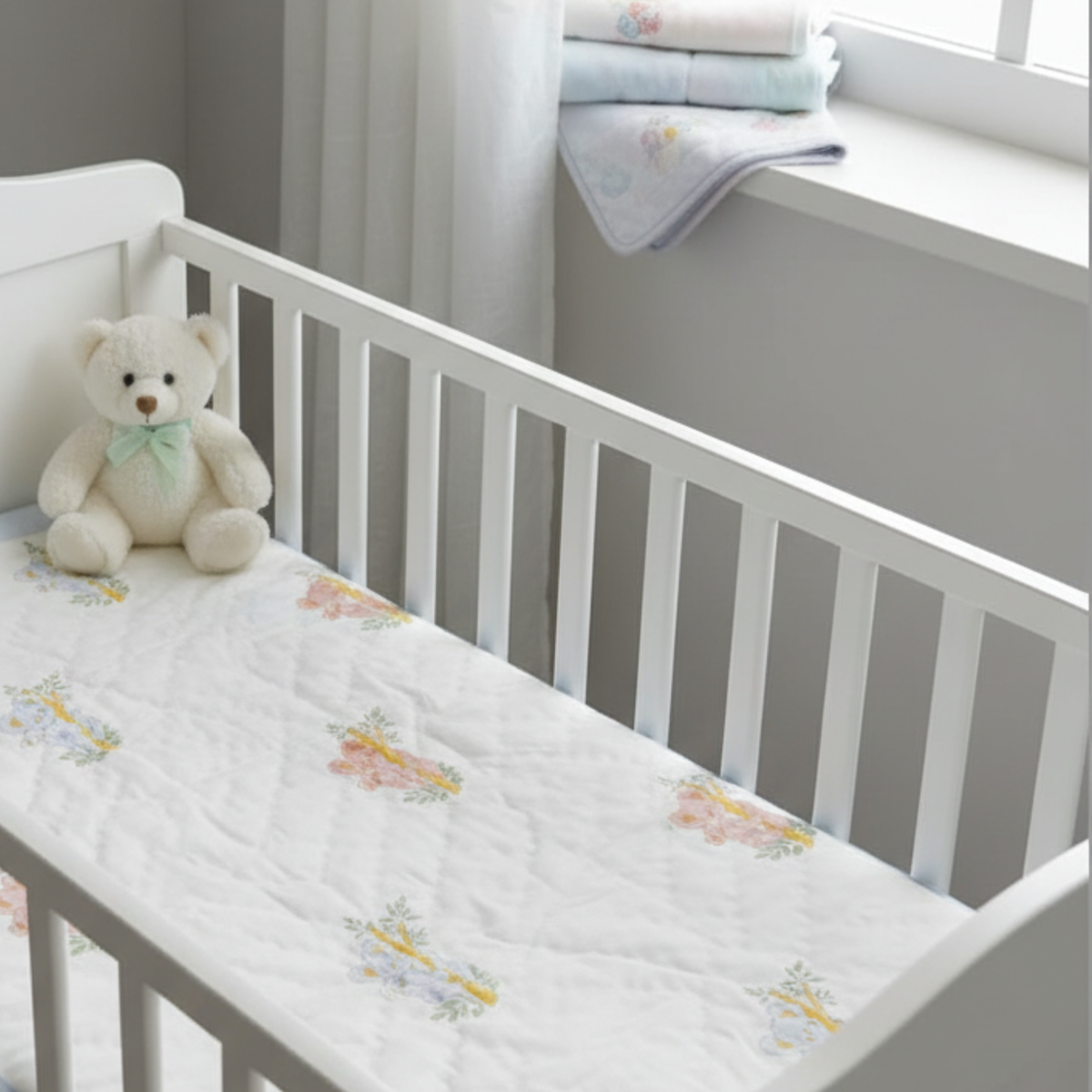 Traditional 'Kantha' quilted, soft, snug, filled with soft cotton (flannel sheet) and wrapped in 100% pure cotton mulmul, our hand block printed quilts are reversible for two beautiful looks. Light enough for AC rooms and cozy enough for winter nights, they bring year-round comfort and charm to your baby’s space. The Koala print adds the gentle warmth of cuddly koalas, making it as delightful to look at as it is to snuggle under.