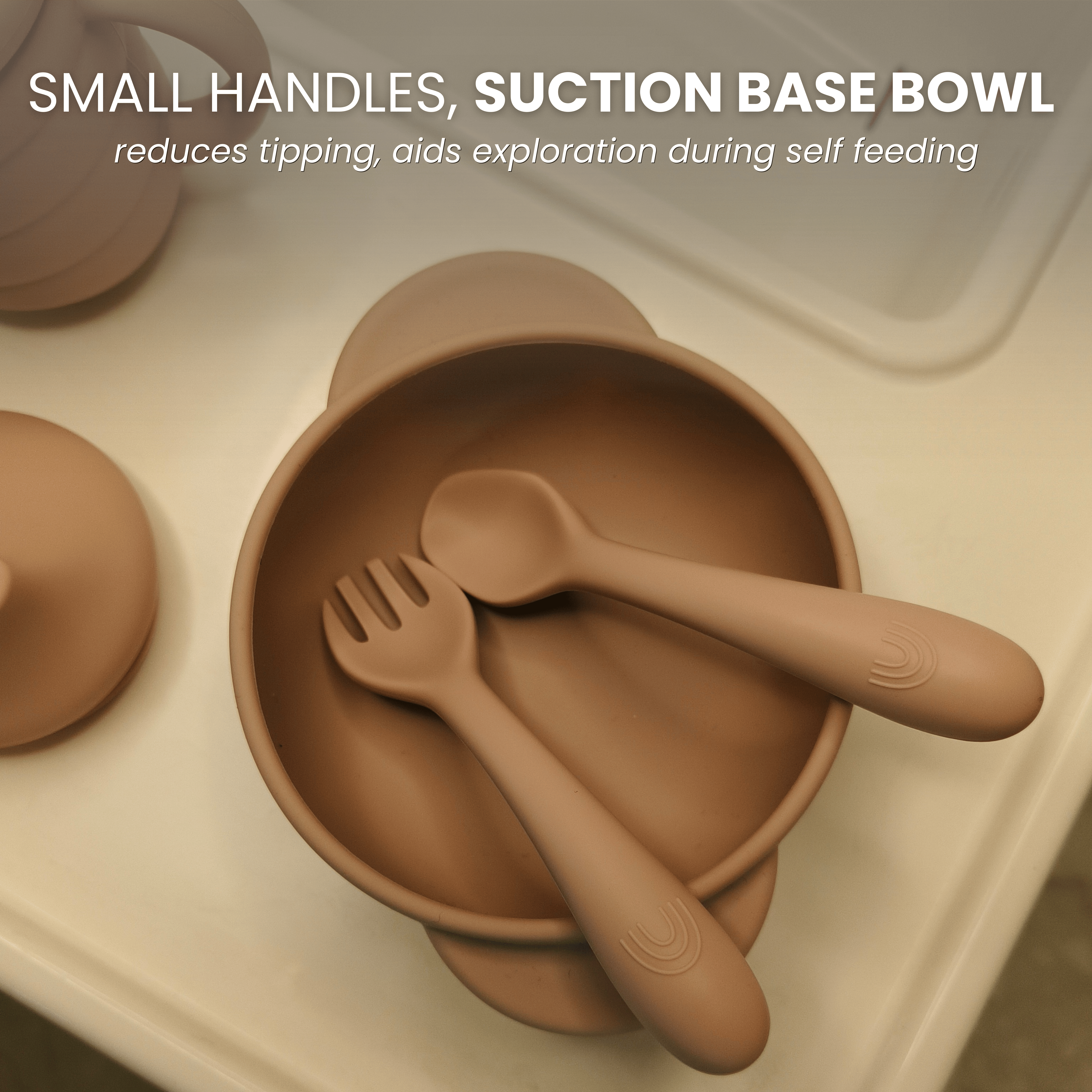 - Cutlery: Gentle, flexible, ergonomic spoon & fork with soft tips to protect little teeth.