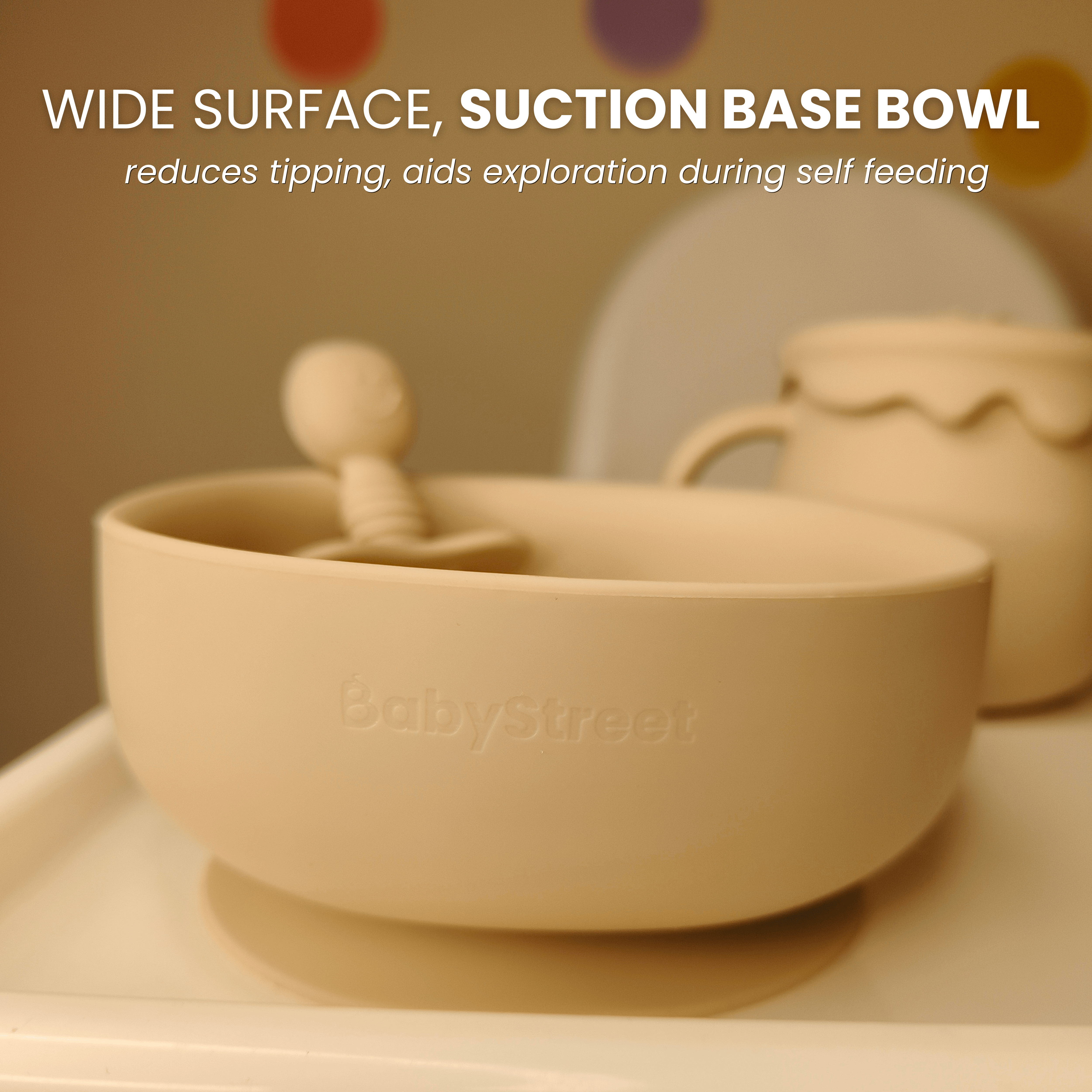 - Round Bowl: Open design makes scooping easy, while suction base ensures that everything keeps in place.