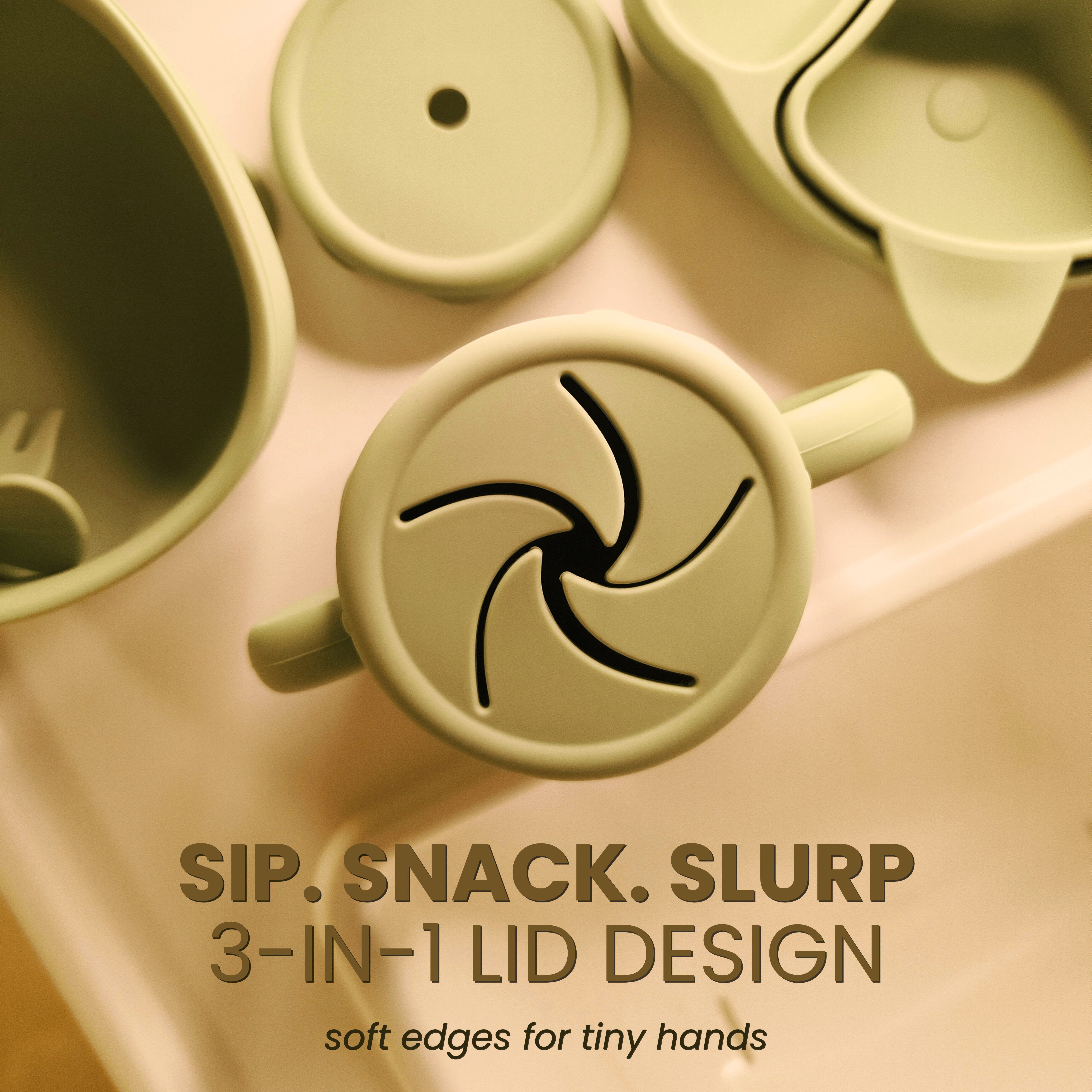 • Sippy Cup: 4-in-1 design grows from snack to sippy to straw to open as the self feeding grows.