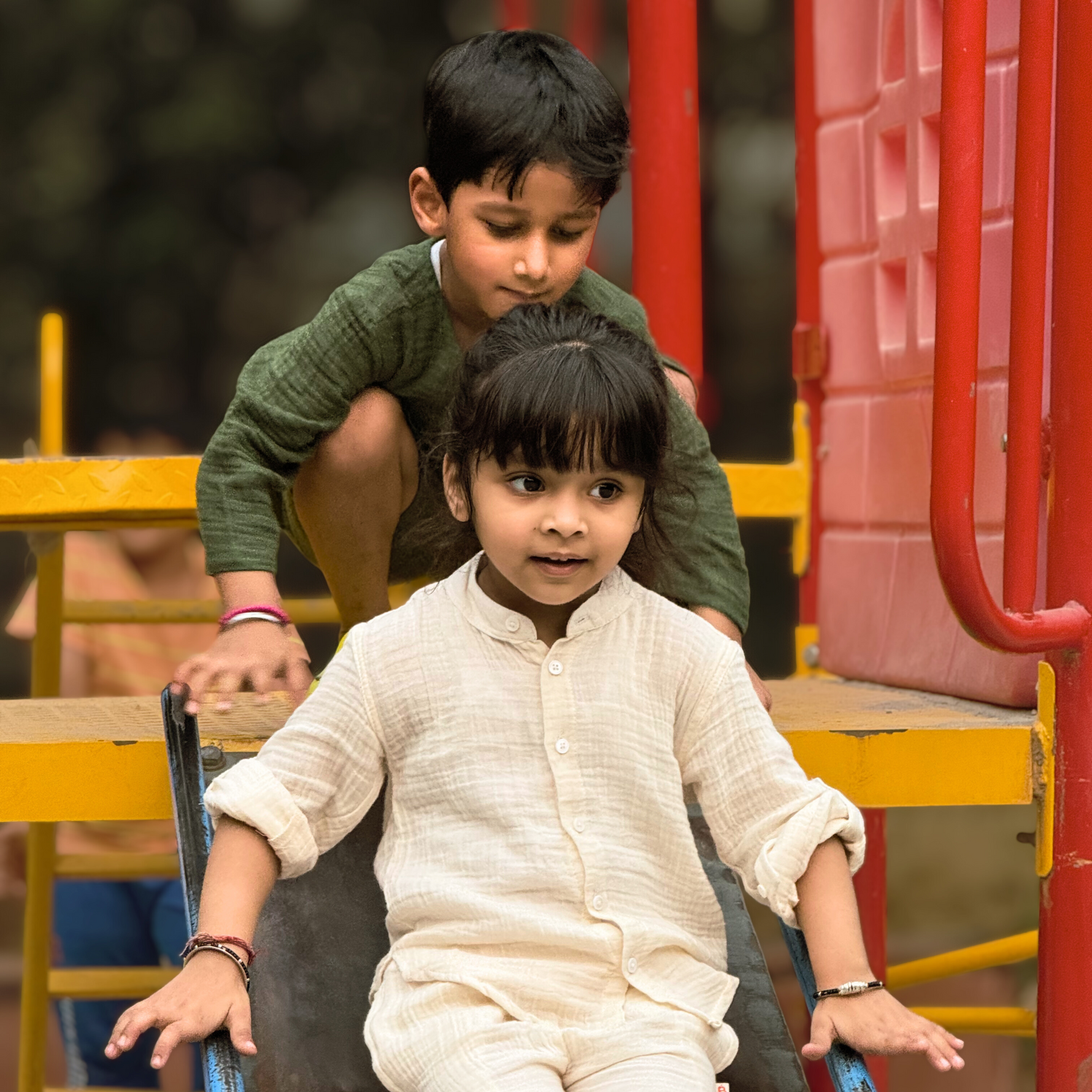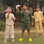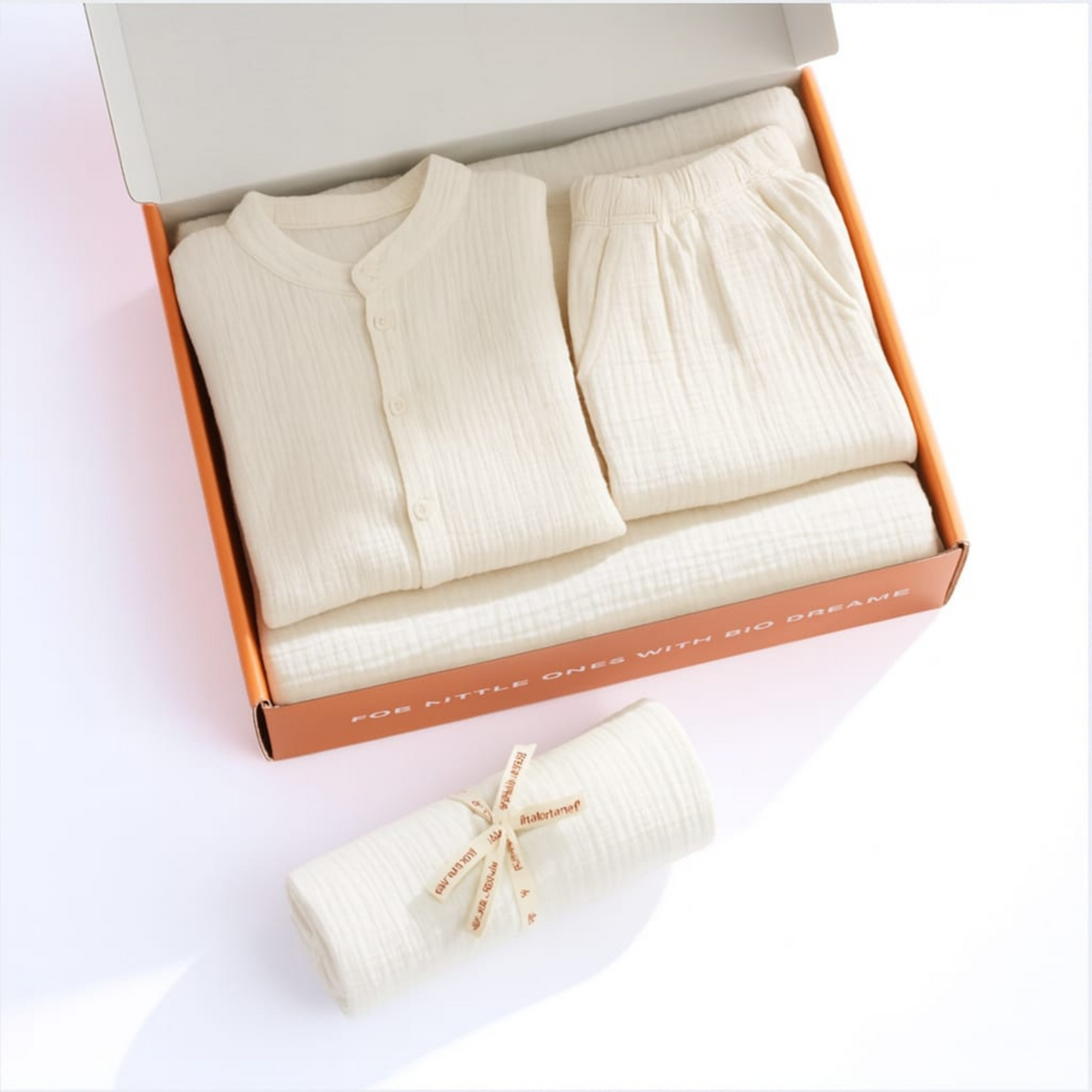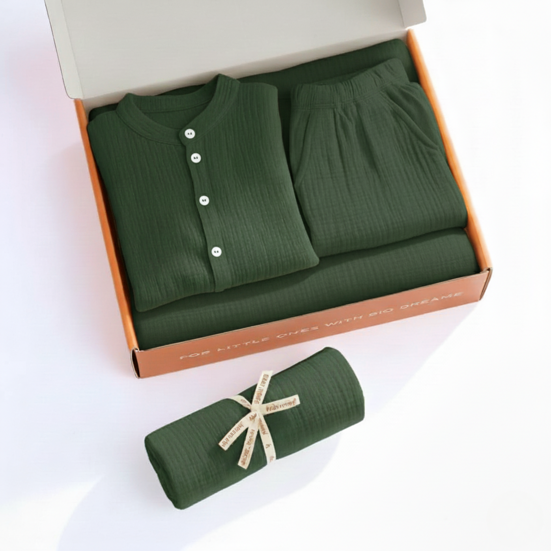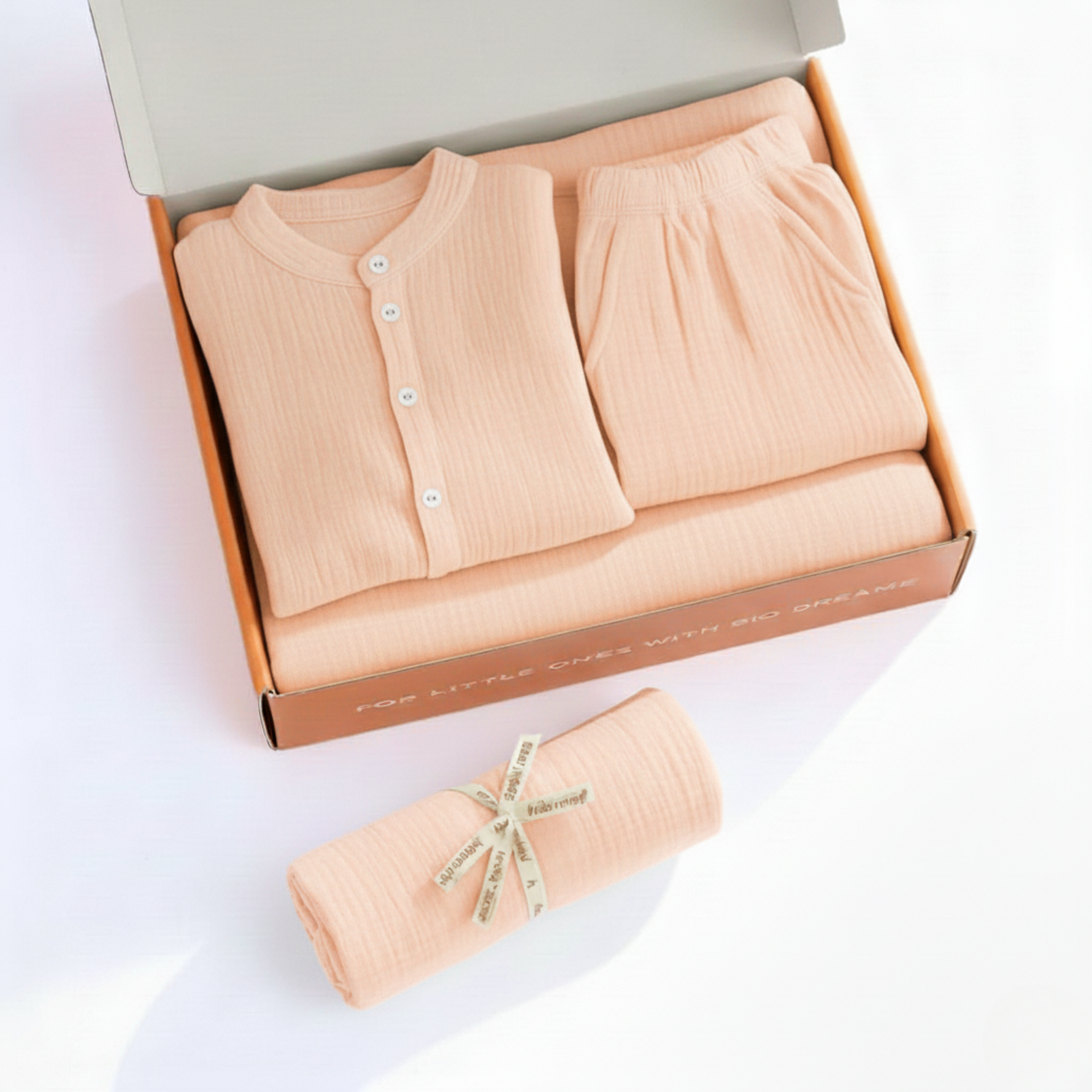 A thoughtfully curated bundle of everyday muslin essentials—2 burp cloths, 1 versatile multipurpose cloth, and 1 timeless co-ord set. Soft, breathable, and toxin-free, crafted for comfort in every little moment.